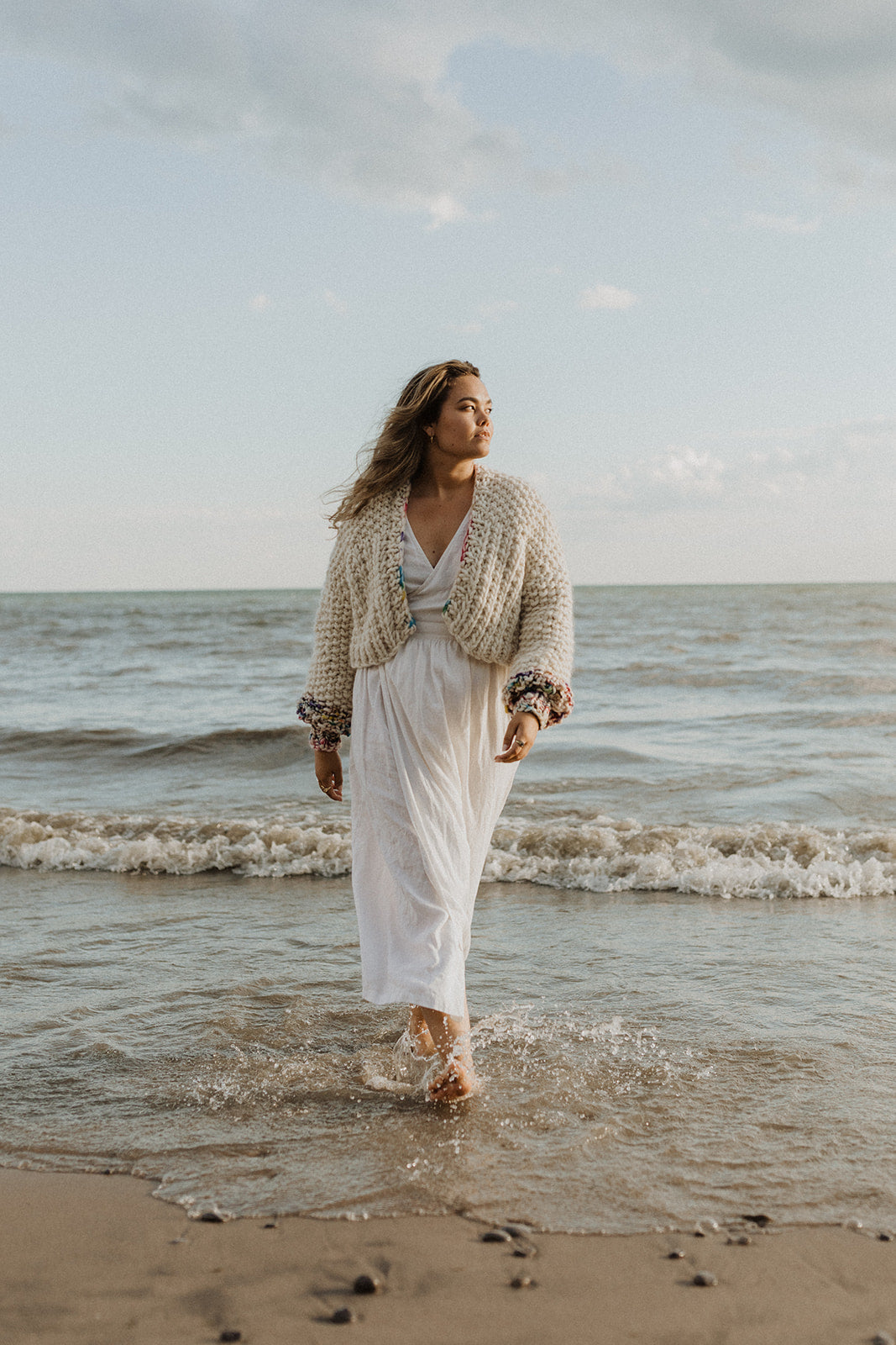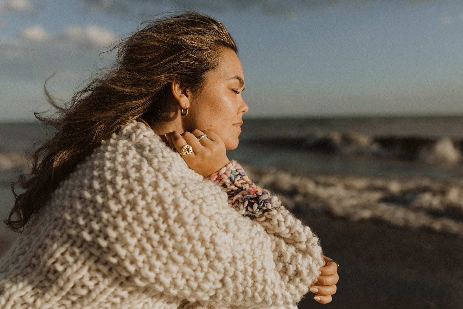 Hand knit from the softest natural 100% Merino Wool, this fabric is incredibly warm and has a really luxurious quality.