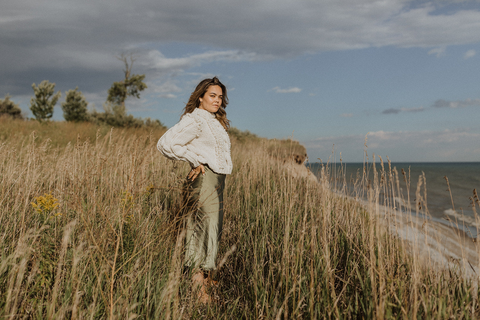 A high mock-neck, tapered sleeves and a cropped fit. Ideal for layering over dresses or high waisted jeans.