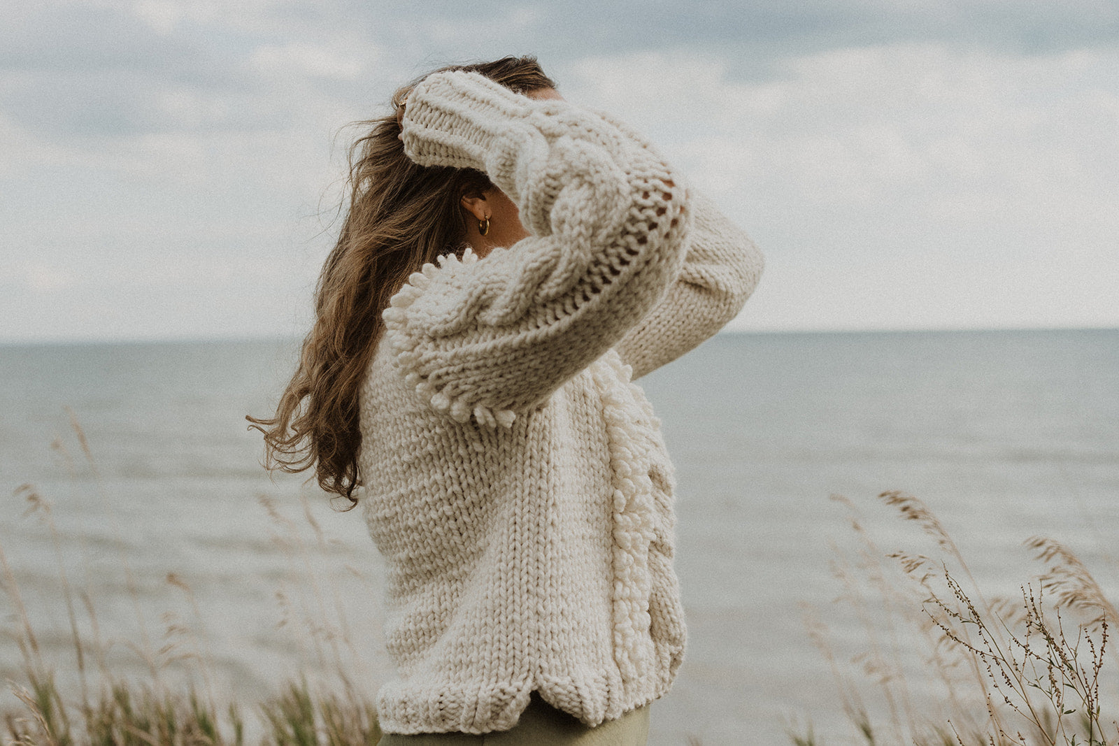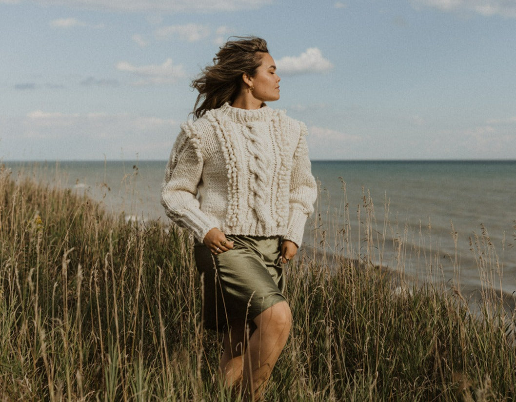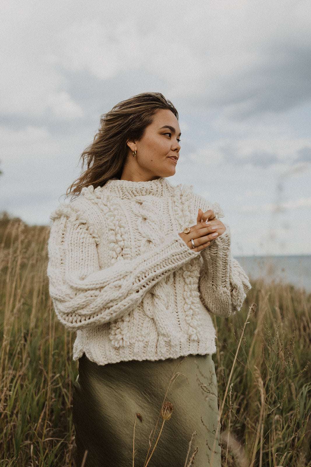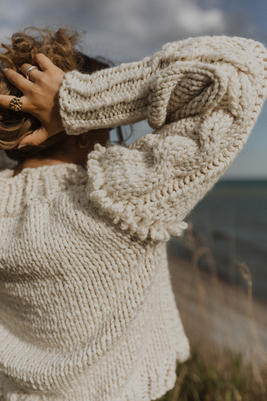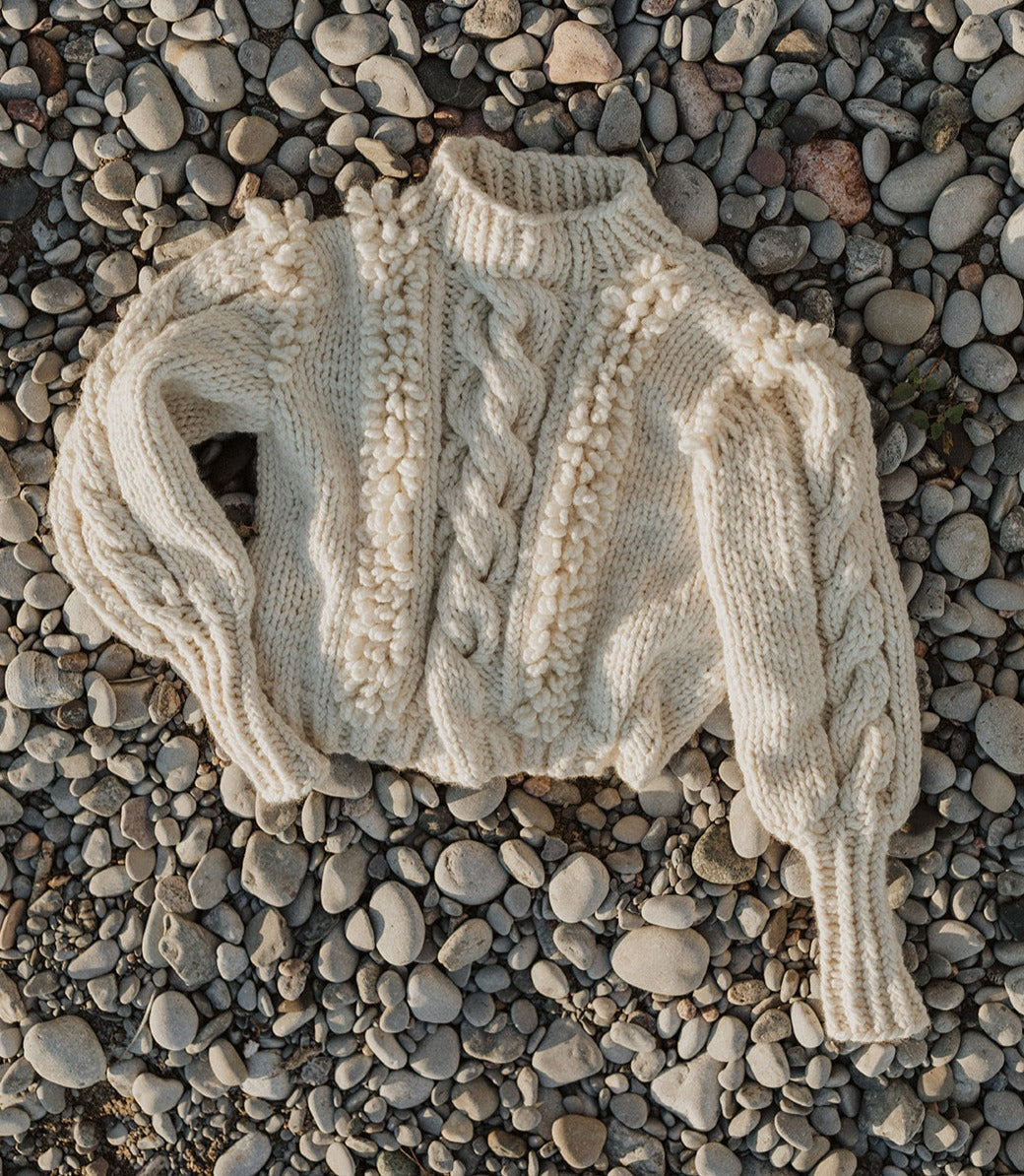Reminiscent of traditional cable knit sweaters, intricately handknit from the softest merino/ alpaca mix.
